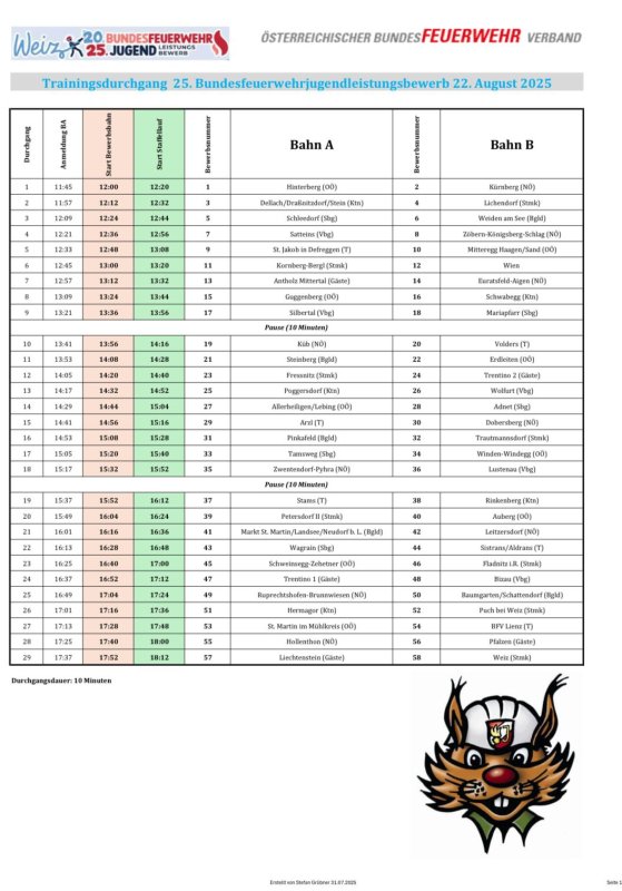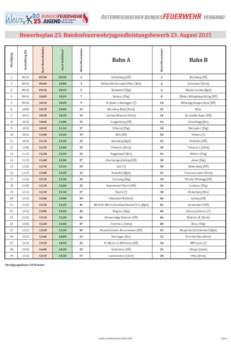 für alle interessierten ZuschauerInnen die genaue Uhrzeit für die jeweiligen Starts unserer jungen Kameradinnen und Kameraden: