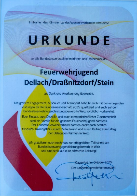Die Ehrung erfolgte durch die Gemeinde sowie den Kärntner Landesfeuerwehrverband als Anerkennung für den großen Einsatz, die Disziplin und den Teamgeist der Jugendlichen.