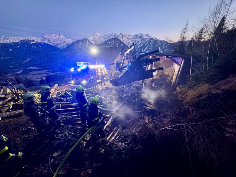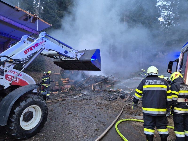 In weiterer Folge kam ein Holzkran zum Einsatz, um das Material gezielt abzutragen und Glutnester freizulegen. Erst danach konnte eine effektive Brandbekämpfung durchgeführt werden.