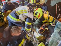 So gab es mehrere eingeklemmte Personen im Pkw. Dieser musste gesichert und dann die Verletzten mit schwerem Bergegerät befreit und zur weiteren Versorgung geborgen werden.
