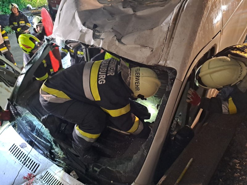 In dem am Unfall beteiligten Transporter hatte sich auf Grund mangelnder Ladungssicherung ein spitzes Metallteil gelöst und in den Körper eines Fahrzeuginsassen gebohrt.